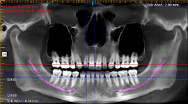 Orthopantomogramm (OPG) (Nervverlauf farblich dargestellt) |