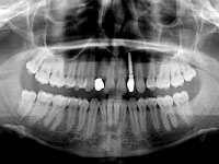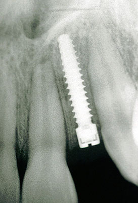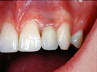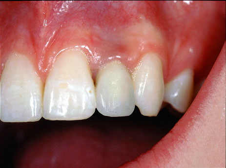 Einzelne Zähne können auch in völlig gesunden Gebissen durch Unfall oder Entzündungen verloren gehen, ebenso sind besonders die oberen seitlichen Schneidezähne häufiger nicht angelegt. Die drei Bilder zeigen den Ersatz eines nicht angelegten seitlichen oberen Schneidezahnes bei einem Jugendlichen.