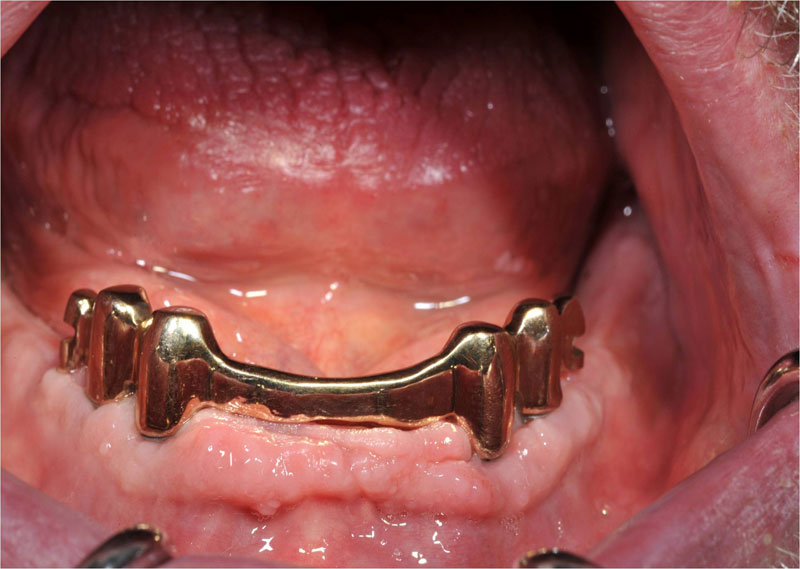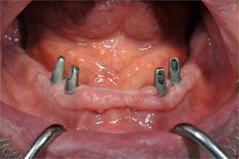 Besonders beim zahnlosen Unterkiefer ist der Halt der Prothese meist vollkommen ungenügend mit der Folge von Störungen der Ess- und Sprachfunktion und Veränderungen des Gesichtsausdruckes bis hin zum Verlust der natürlichen Mimik.