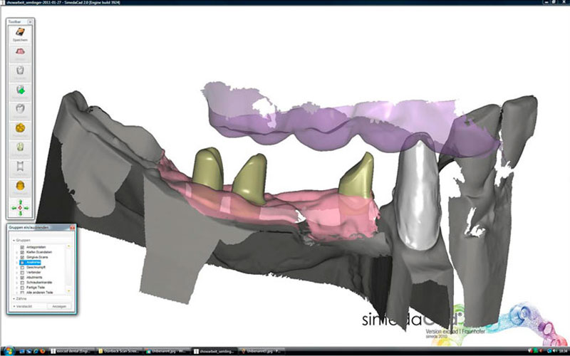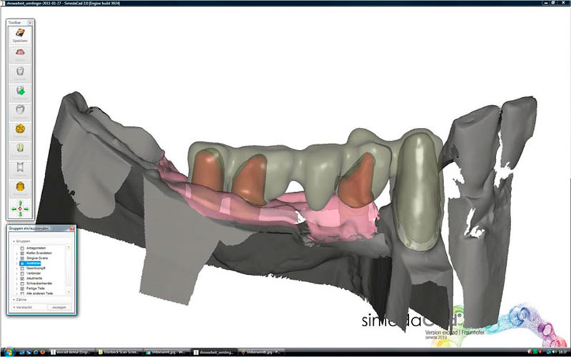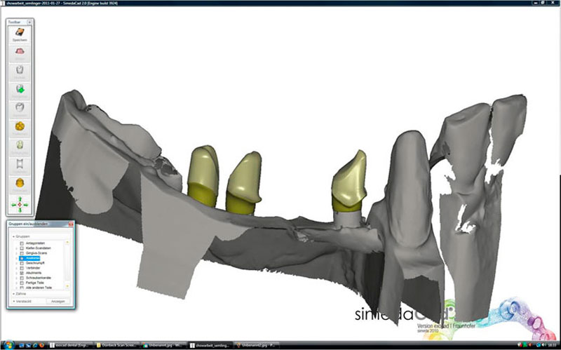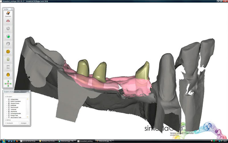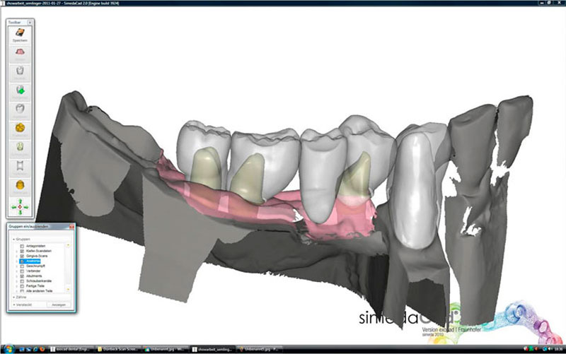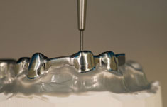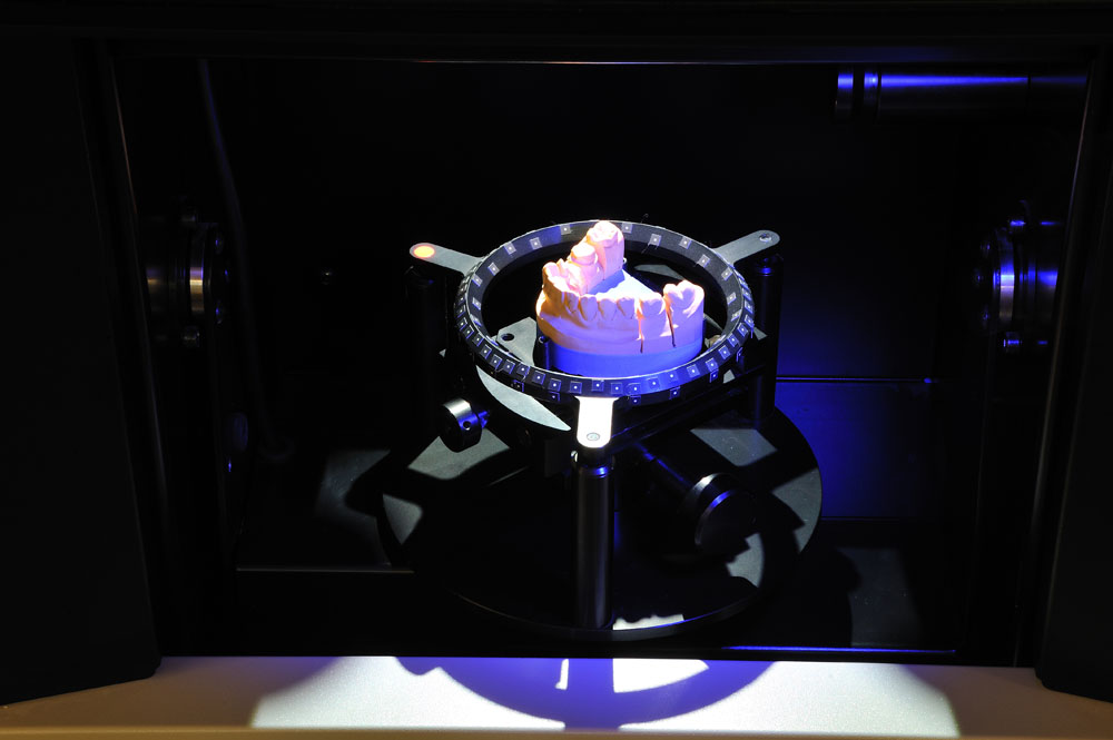 Mittels CAD CAM Technik (d.h. Computergestütztes Design und Fertigung) werden Ihre Modelle von einem Scanner erfasst, die Daten digitalisiert und dann die Implantataufbauten (Abutments) und die Kronen-/ Brückengerüste mit dem Computer berechnet und designed. Hochmoderne Fräsmaschinen fräsen dann die Teile aus beliebigen Ausgangsmaterialien. Diese Technik ersetzt nicht die bewährten zahntechnischen Methoden, aber ergänzt diese in geradezu genialer Weise!