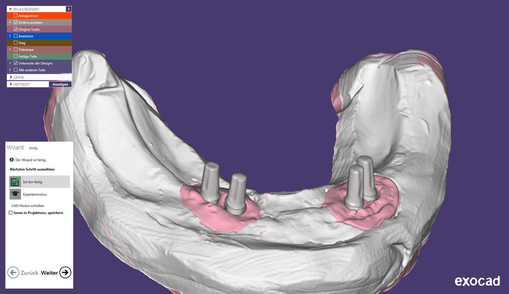 Individuell gefräster Steg auf 4 Implantaten